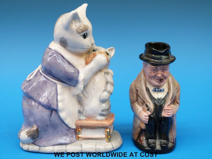 A Beswick ware Tabitha Twitchit & Moppet limited edition figure with gold backstamp and a Royal Doulton Winston Churchill small jug