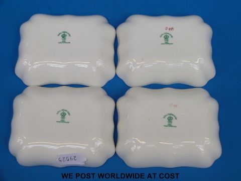 A set of four Royal Crown Derby shaped trinket trays hand decorated with sailing ship scenes, all signed by W.E.J. Dean (9 x 7cm)