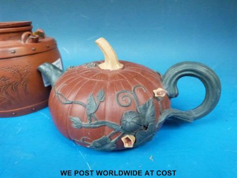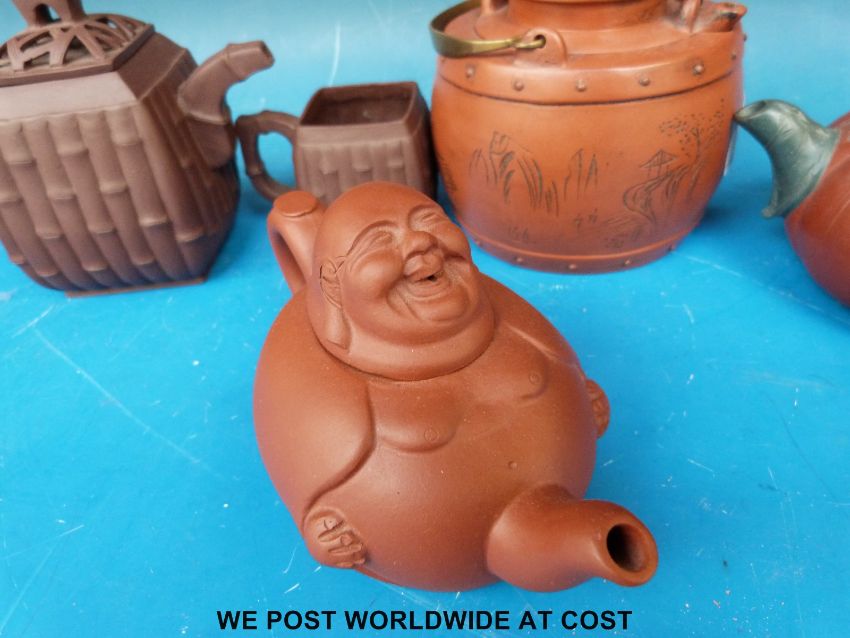 Two Yixing teapots together with two similar teapots