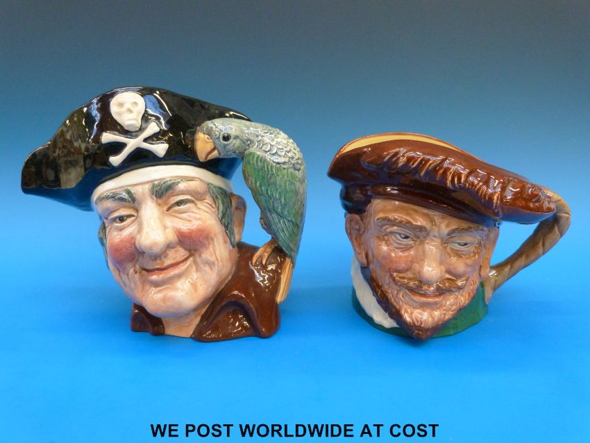 Two large Royal Doulton character jugs Long John Silver D6335 (18.5cm tall) and Drake D6115 (15.2cm tall)