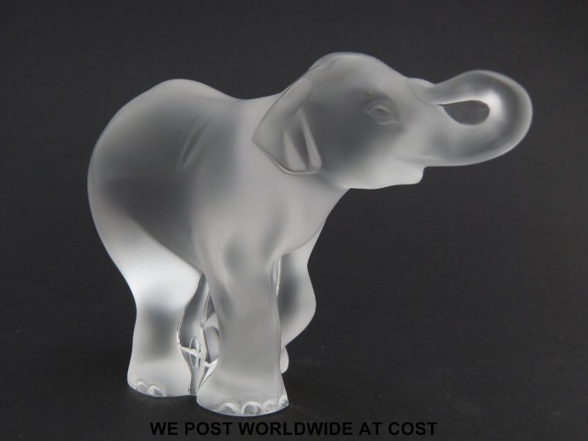 Lalique glass model of a running baby elephant, signed to base Lalique France (8cm tall)