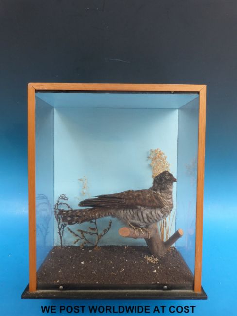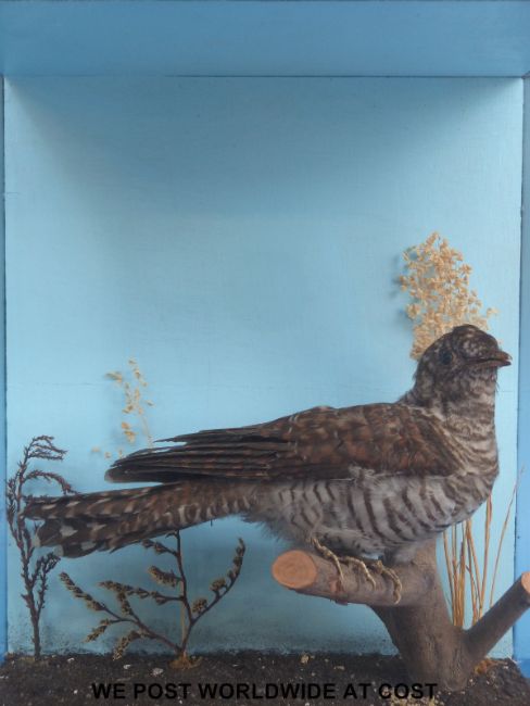 A taxidermy study of a cuckoo in case