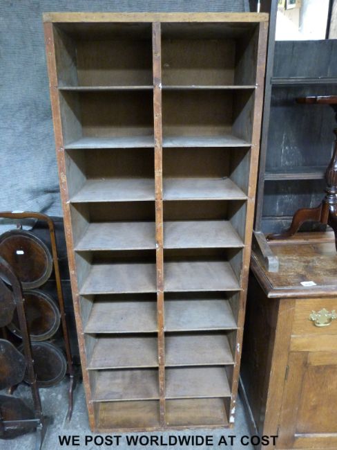 A wooden pigeon hole unit (W58 x D28 x H147cm)