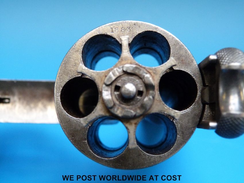 Smith & Wesson .44 Russian DA six shot hammer action revolver with monogrammed grips and named to the top flat Smith & Wesson Springfield Mass U.S.A. pat'd Jan 17 & 24 65, July 11 65, Aug 24 69, Apr 20 75, Feb 20 & Dec 18 1877 Reissue July 25 1871, numbered 1883 and 30462, overall length 25cm