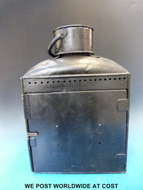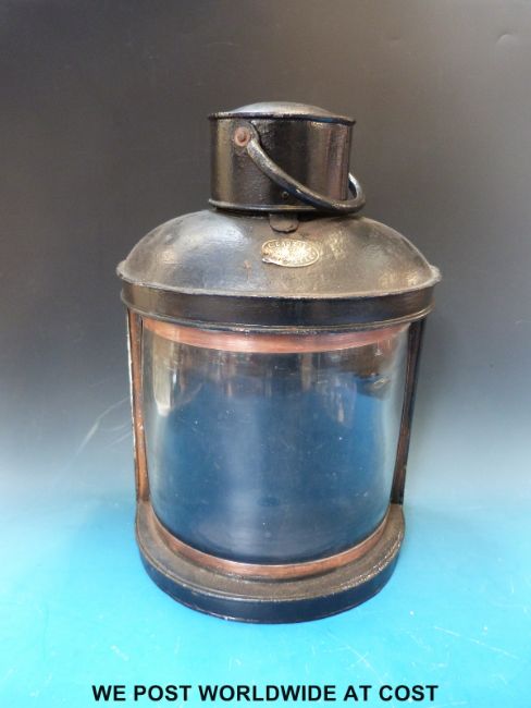 British Railways docking lamp with brass plaque ' C Crozier, Newcastle' (height 49.5cm)