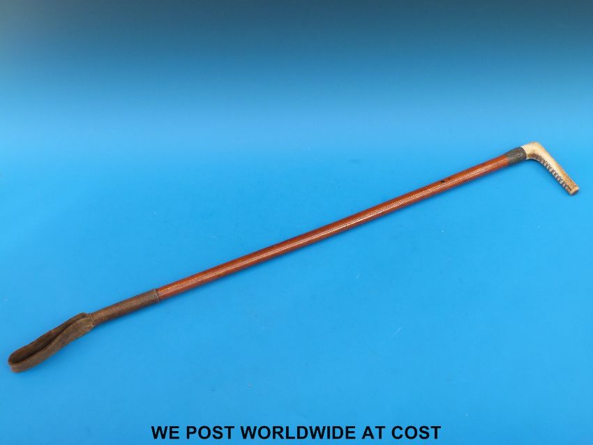 A Swaine & Co., London hallmarked silver mounted riding crop with inscription 'Ed Shippey Esq June 16th 1875'