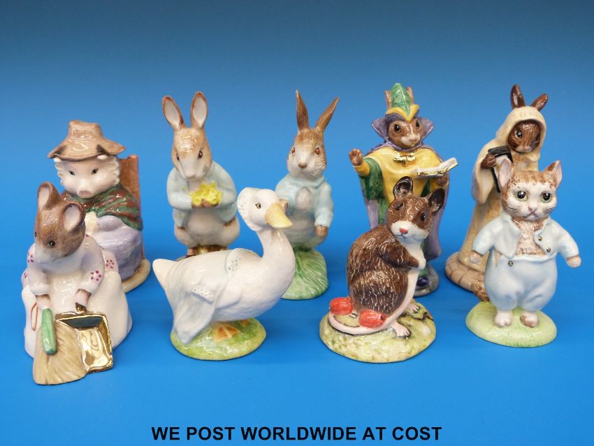 Six Beatrix Potter figures, a Beswick Woodmouse 3399 and two Bunnykins figures