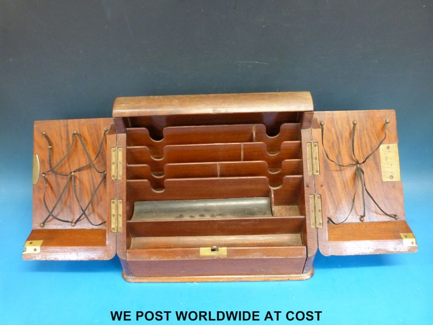 A desk top stationery box, oak musical box by Tallent of Old Bond St and a further oak box