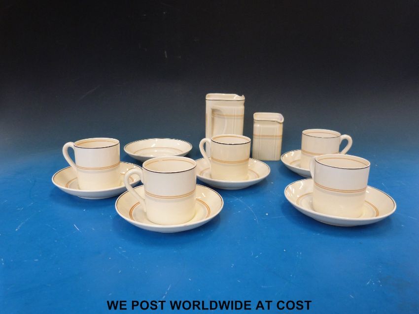 A Cunard White Star Copelands Cube part tea set, comprising two jugs, six saucers and five cups