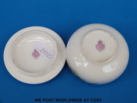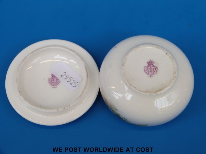 A larger Royal Worcester pill box hand decorated with a kingfisher and signed Powell, puce mark (4.5cm tall, diameter 6.5cm)