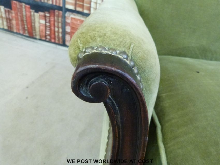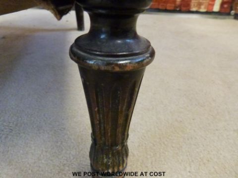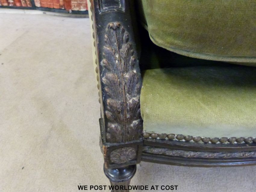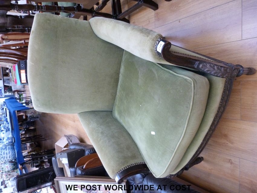 A neoclassical style armchair with carved decoration to arms and front rail, raised on reeded and carved front legs