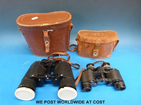A pair of Carl Zeiss 6x24 binoculars and a pair of Snow- man 12x50 binoculars both in leather cases