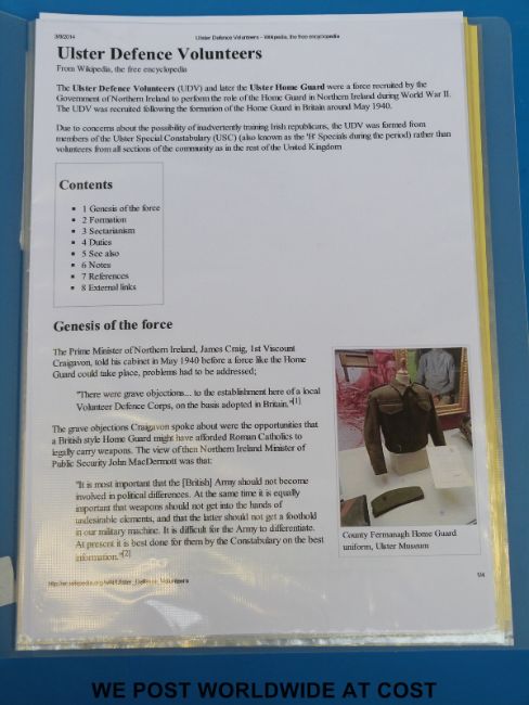 A quantity of ephemera etc relating to Sergeant D Clark of the Ulster home guard including enamel badge, ID card, certificates etc together with an album of ephemera of Secret Army / resistance interest including signed covers