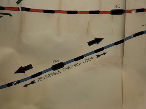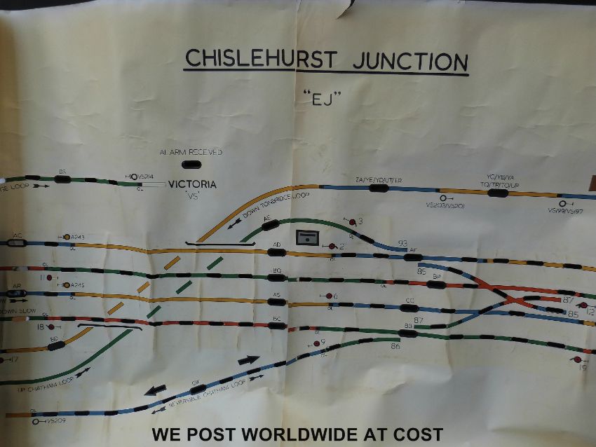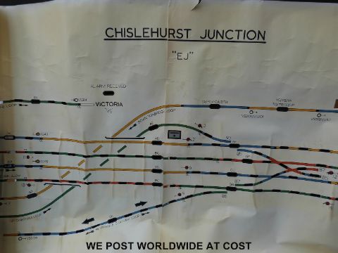 A large signal box diagram for Chislehurst junction with slots for indicator lamps, dated 1988 (length 340cm)