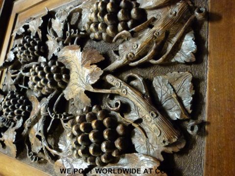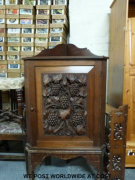 A 19thC mahogany corner cupboard on stand with heavily carved grape and vine decoration (Height 127cm)