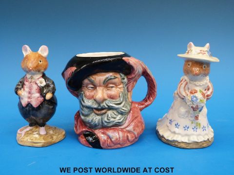 Two Royal Doulton Bramley Hedge figures and a Falstaff character jug