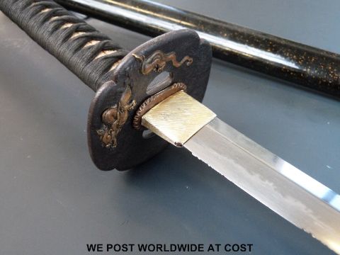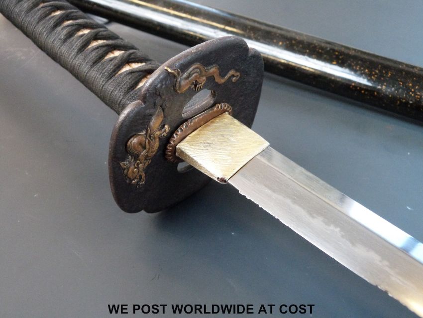 A Japanese Katana Samurai sword with signed tang for Norimitsu circa 1312 - 1394 (approximately 70.5cm long)