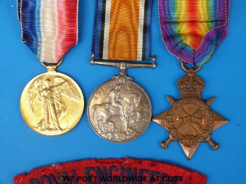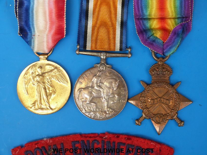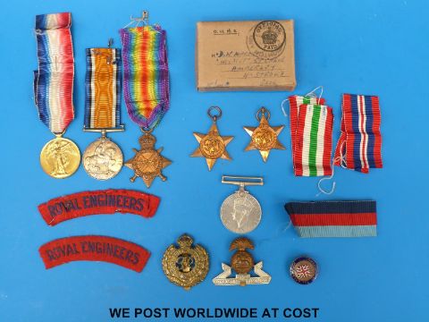A WWI and WWII father and son medal group, comprising WWI trio awarded to S4-086603 Pte L.Marmont A.S.C and WWII trio comprising 1939-45 star and medal and Italy star, with box named D.W.Marmont, Royal Engineers and Lancashire Fusiliers cap badges and Comrades of the Great War lapel badge