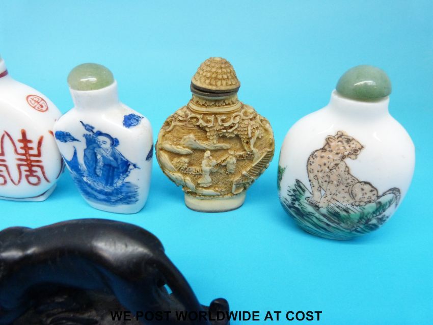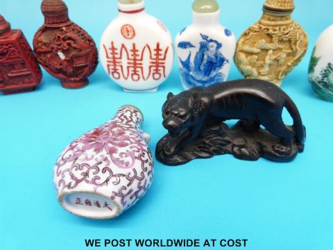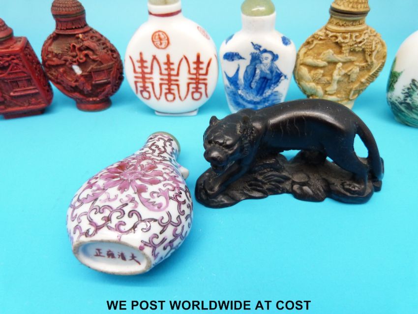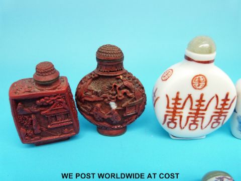 Two Chinese cinnabar lacquer style scent bottles, four Chinese ceramic etc