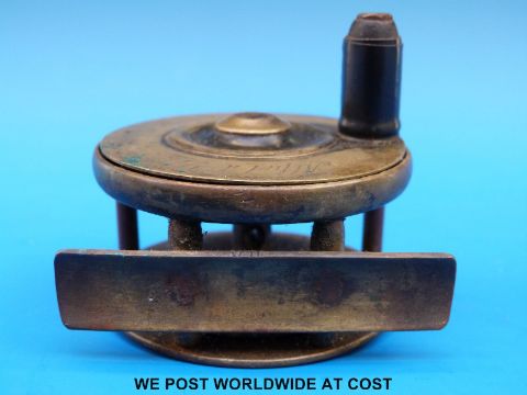 Mallochs patent brass fishing reel with retailers address 20 Margate St, London