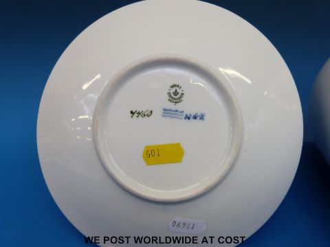 A large Royal Copenhagen vase with iris design (30cm tall) and a small Royal Copenhagen plate (20cm diameter) both in boxes.