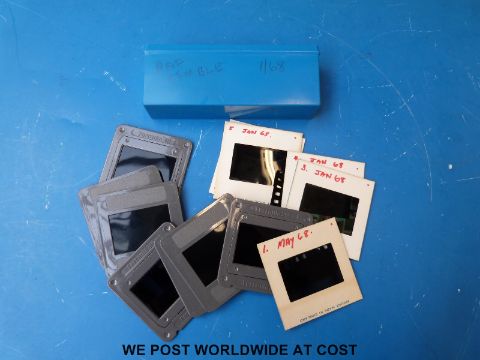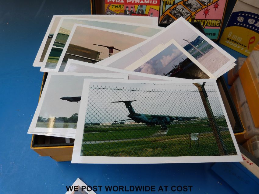 A quantity of transport slides, photographs and cine film to include aircraft, R.A.F. Kemble circa 1960's, cars, motorcycles, motor racing and a selection of children's film reels