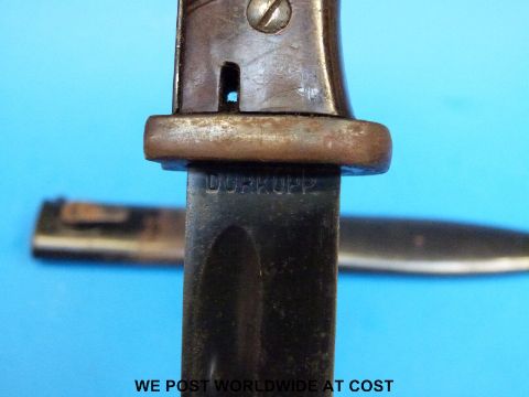 A German Durkopp bayonet in sheath and a William Rodgers fighting knife