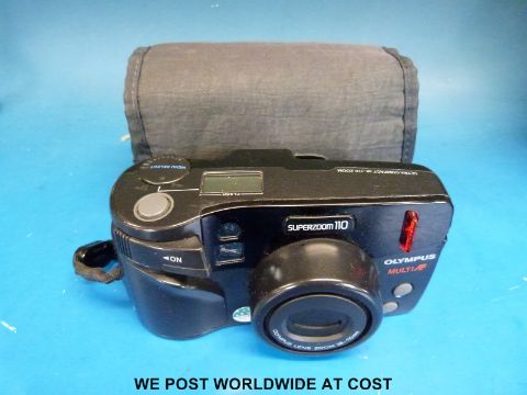 A collection of cameras to include an Olympus, Hanimex 35D, catalogues, accessories etc.