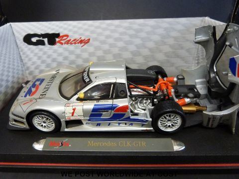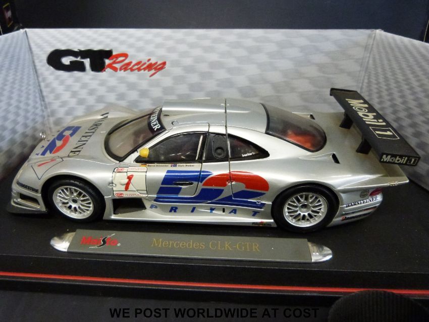 Seven Burago 1:24 scale diecast model vehicles together with a Maisto GT Racing 1:18 scale Mercedes CLK- GTR all in original boxes