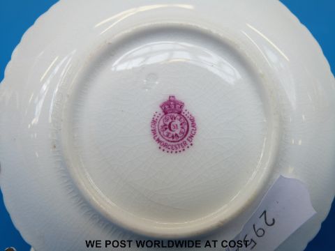 A Royal Worcester demitasse cup and saucer hand decorated with scenes of sailing boats & signed Rushton (cup 4.5cm tall)