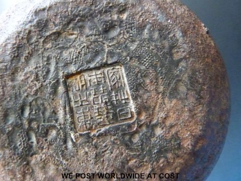 A Japanese bronzed teapot decorated with dragons with seal mark to base