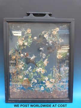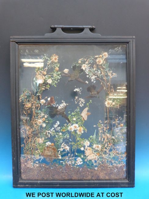 A glazed fire screen with taxidermy hummingbirds within (73 x 56cm)