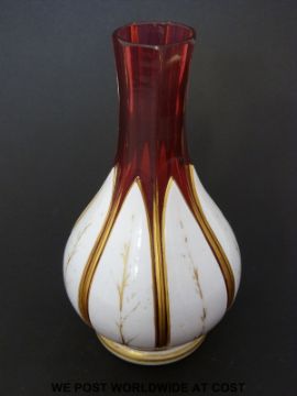 Bohemian overlaid cranberry glass bottle vase with gilt decoration (19.5cm tall)