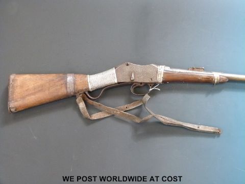 An Afghan or Indian Martini Henry rifle decorated with engraved white metal banding, overall length 112cm
