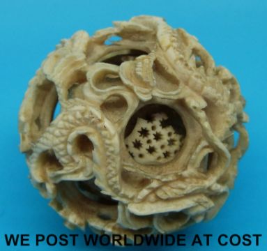 A carved ivory puzzle ball