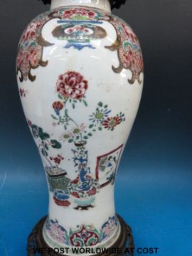 Two Chinese vases one with metal top and base (35cm tall) and the other on yellow ground (21cm tall)