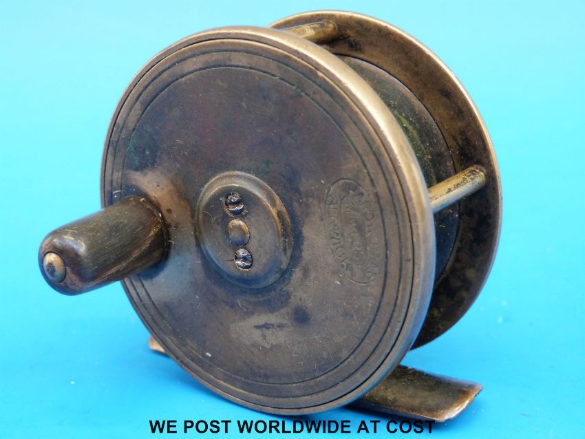 A Hardy Bros. brass reel, 2 1/2" diameter