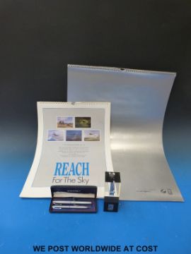 A Rolls Royce jet engine blade, by repute ex Concorde, Sheaffer pen set and Rolls Royce calendar etc