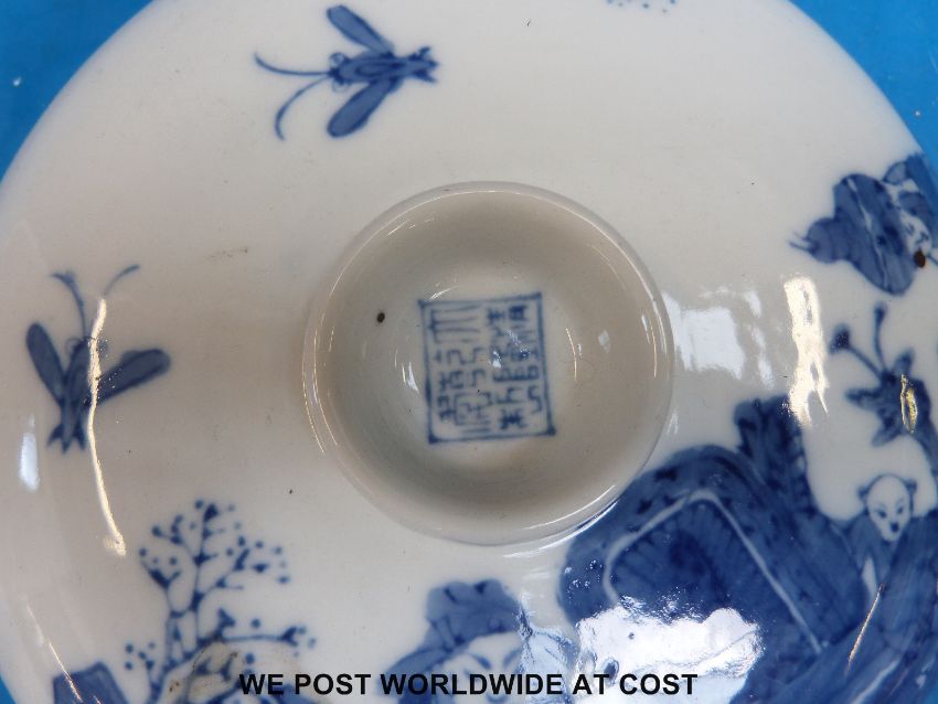 A Chinese blue and white plate together with a similar covered dish