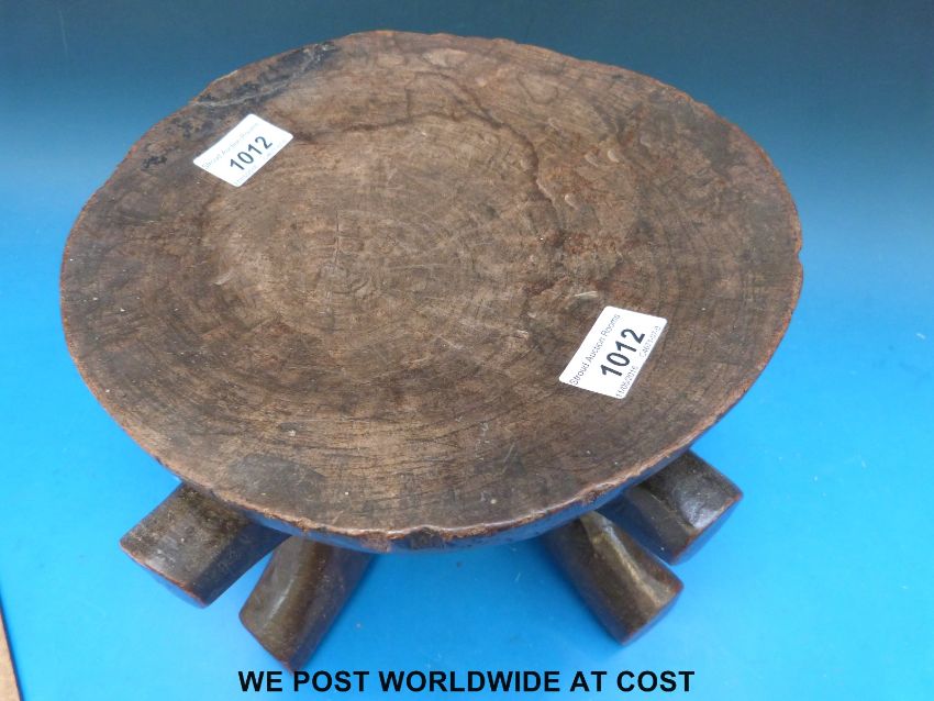 An African hardwood stool originally given to Commissioner R A McRae of Nyasaland (19cm tall)