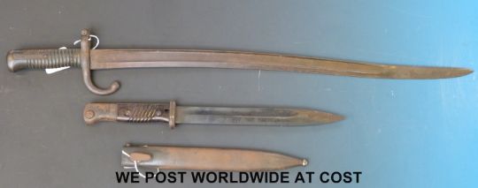 A German K98 bayonet marked 42 asw and a French style bayonet