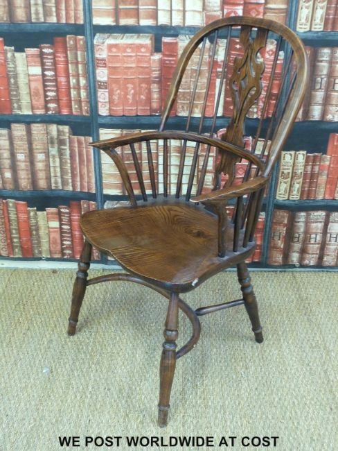 A set of five (4+1) Windsor armchairs with pierced splats, swept back arms