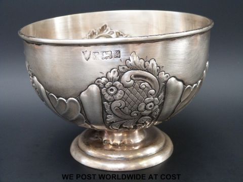 A hallmarked silver pedestal small punch bowl Birmingham 1906 maker Israel Sigmund Greenberg, diameter 18cm (weight 555g)