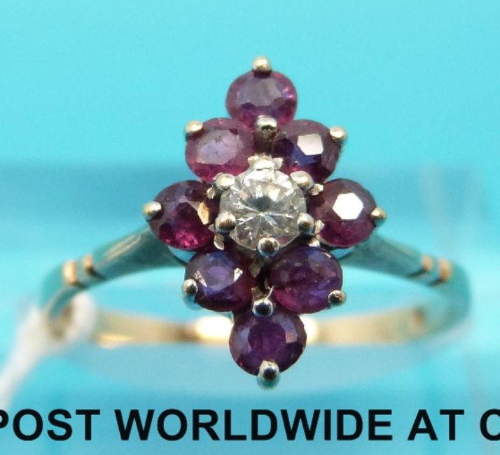 A 9ct gold ring set with a clear stone to the centre surrounded by garnets (size N)