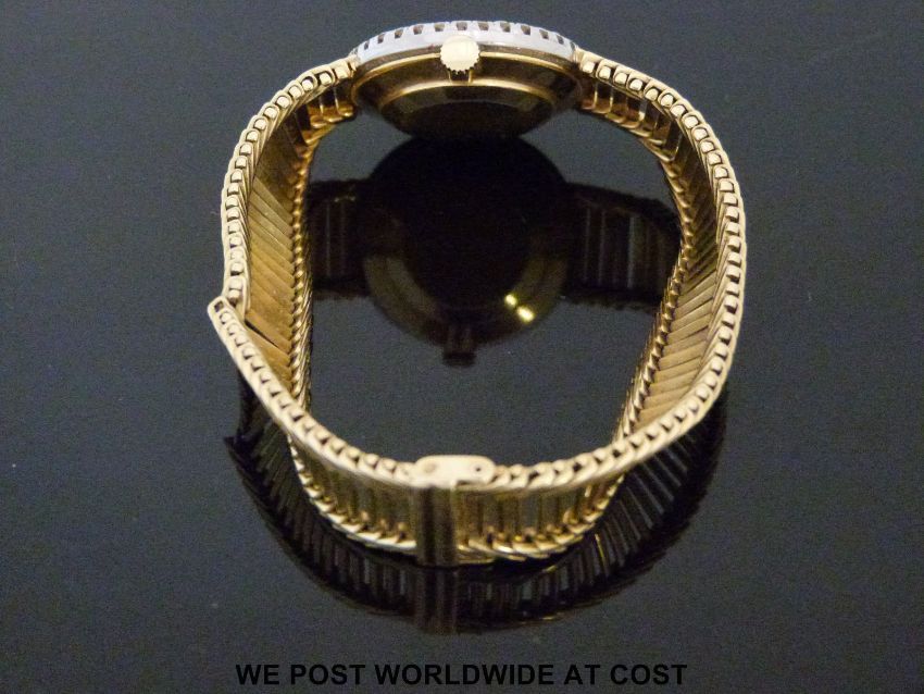 Bueche Girod 18ct gold ladies wristwatch, the bezel set with 36 brilliant cut diamonds (approx 1ct in total), on integral ladder effect strap, case diameter 23mm, 30g.