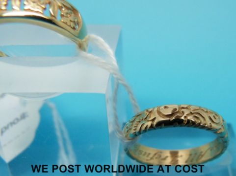 A 15ct gold wedding band (3.2g) and a 9ct gold ring (2.3g)