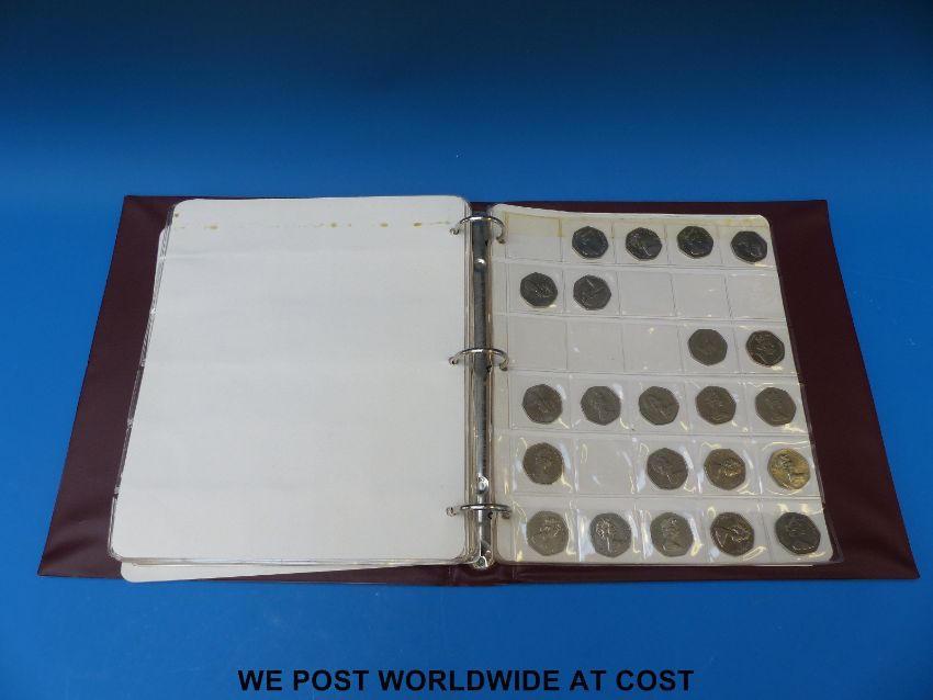 A coin album containing an amateur collection of English coins, including pennies Victoria onwards, half crowns post-1947, first issue 10 pence and 50 pence pieces etc