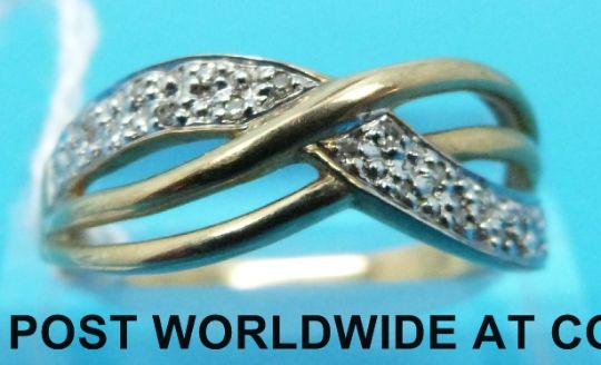 A 9ct gold ring set with diamonds in a cross over design (size Q/R)