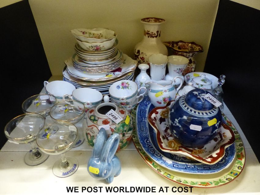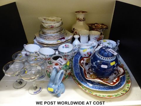 A large collection of ceramics including enamelled Minton meat plate, Royal Worcester, Masons (several patterns) decorative teaware, Babycham glasses, Chinese ginger jar etc