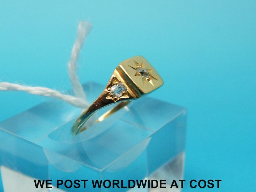 A yellow metal ring set with three diamonds (size I)